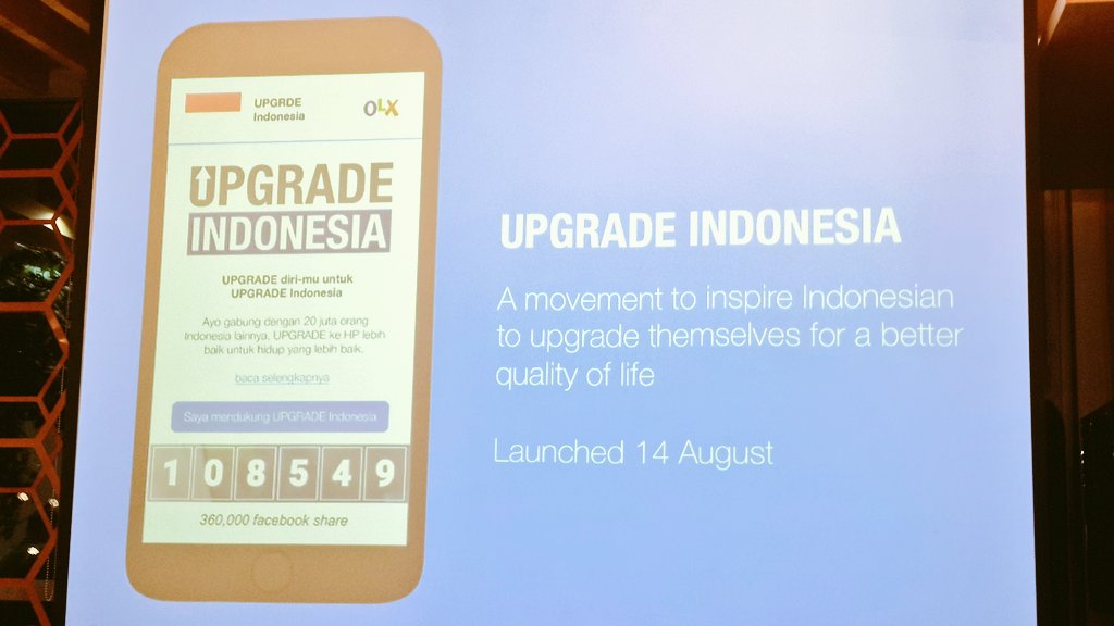 OLX juga sejak Agustus 2015 lalu meluncurkan program Upgrade Indonesia yang bertujuan agar setiap orang melakukan upgrade atau peningkatan terhadap kualitas hidupnya. Jika selama ini menggunakan motor, tidak ada salahnya menjual motor tersebut di OLX dan mulai mencari mobil bekas berkualitas juga di OLX. Setidaknya kita tidak akan kebasahan kalau di jalan tiba-tiba hujan.